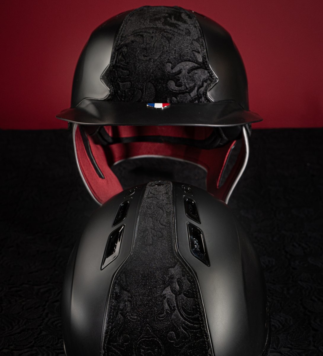 - Helmummantelung : schwarzer Jacquardstoff