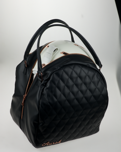 Il n’y a rien de plus embêtant que de se retrouver avec son casque de ski à la main et de ne pas savoir quoi en faire lorsque l’on est en terrasse face à une magnifique vue sur la montagne. Le poser sur la table ? cela prendrait de la place et serait encombrant, il risquerait même de tomber ! Le mettre dans un sac lambda ? Certainement pas, il risquerait de se rayer ! C’est pourquoi, nous mettons à votre disposition un sac de transport spécialement conçu pour transporter en toute sécurité vos accessoires Aurak. En effet, ses deux compartiments accueillent votre casque et votre masque, les protégeant ainsi des rayures et des chocs lors du transport ou de l’hivernage. Cette protection optimale est renforcée par son intérieur velours et son fond plat. En plus d'être pratique, il est également élégant, parfait pour compléter votre look Aurak ! Il possède des anses courtes et des formes arrondies qui offrent un style très actuel, à la fois chic et sportswear. Le sac est composé de simili cuir avec un intérieur en velours noir, ainsi que des attaches et fermetures métalliques. Petit plus pour le modèle femme qui propose des surpiqûres diamant, des attaches et une fermeture métal bronze dans l’air du temps.