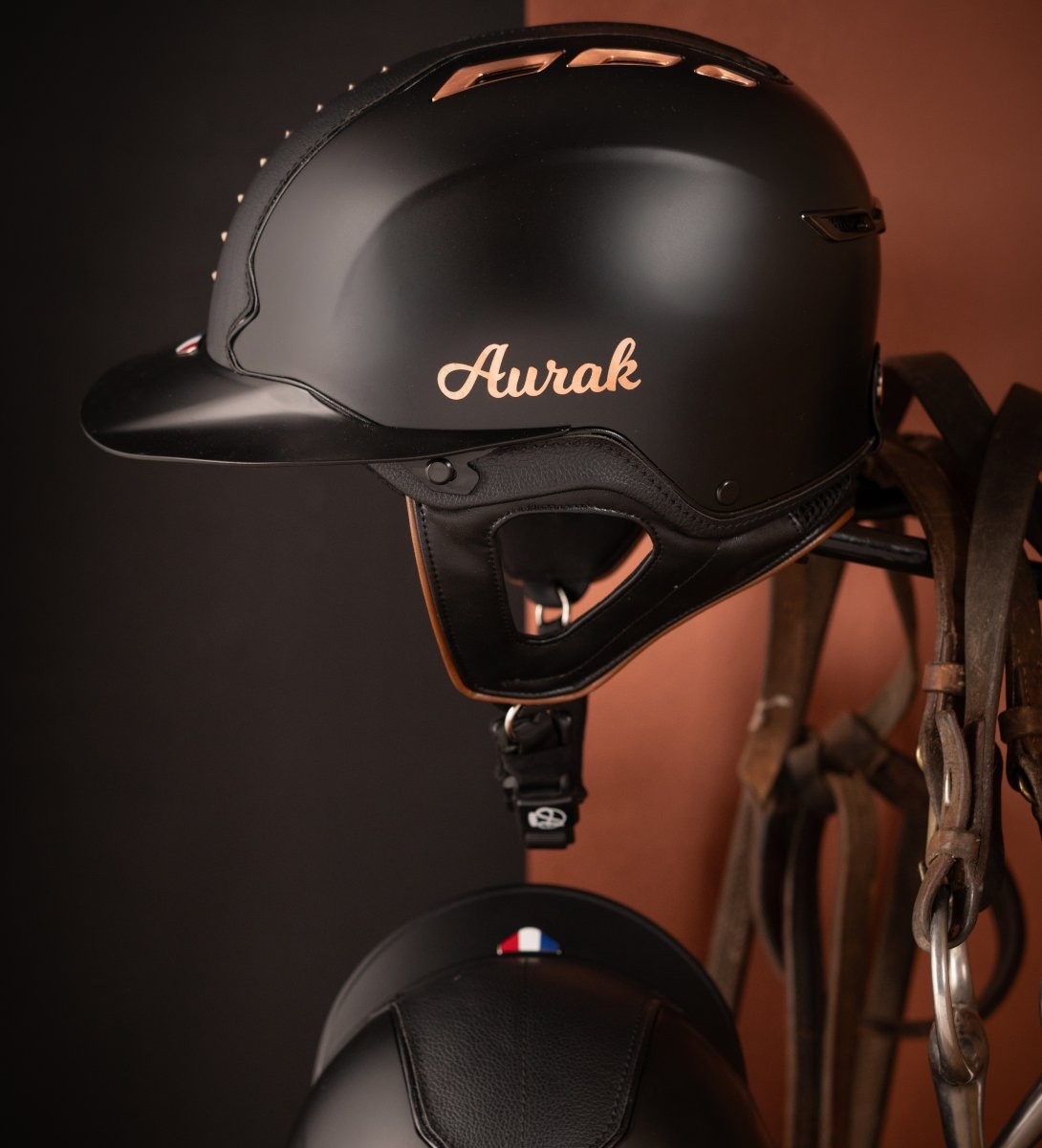 Rehaussé de ventilations en métal cuivré, notre modèle noir mat Polaris offre un mélange subtil de modernité et d’élégance. Sangle et pads d'oreilles en cuir de vachette pleine fleur. Fourni avec 3 doublures intérieur détachables.